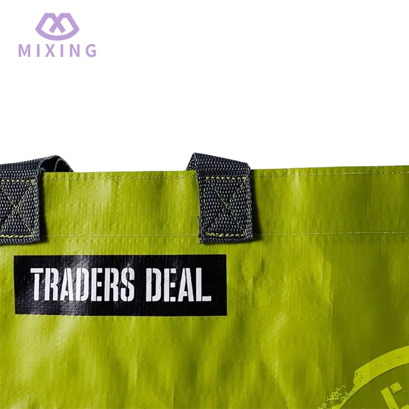 Мы выбираем тканую ткань из полиэтилена высокой плотности, эта ткань на ощупь толстая, имеет хорошую текстуру, ее нелегко царапать и рвут, она может оставаться неповрежденной даже при частой загрузке тяжелых предметов, может нести рекламную информацию в течение длительного времени без повреждений.