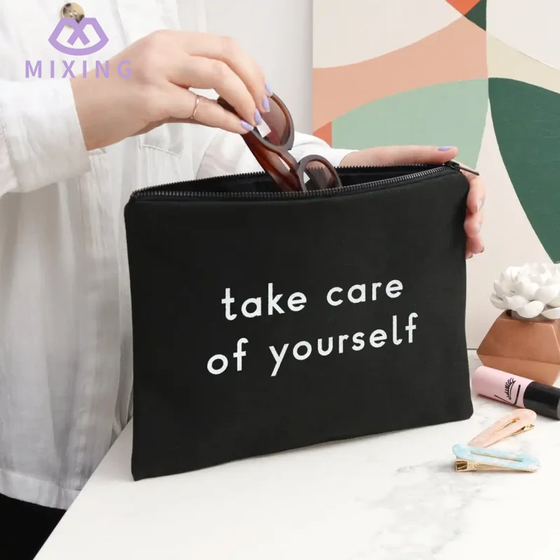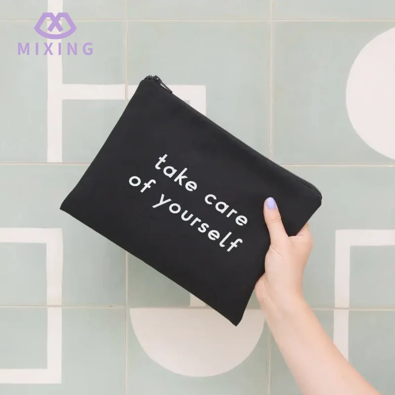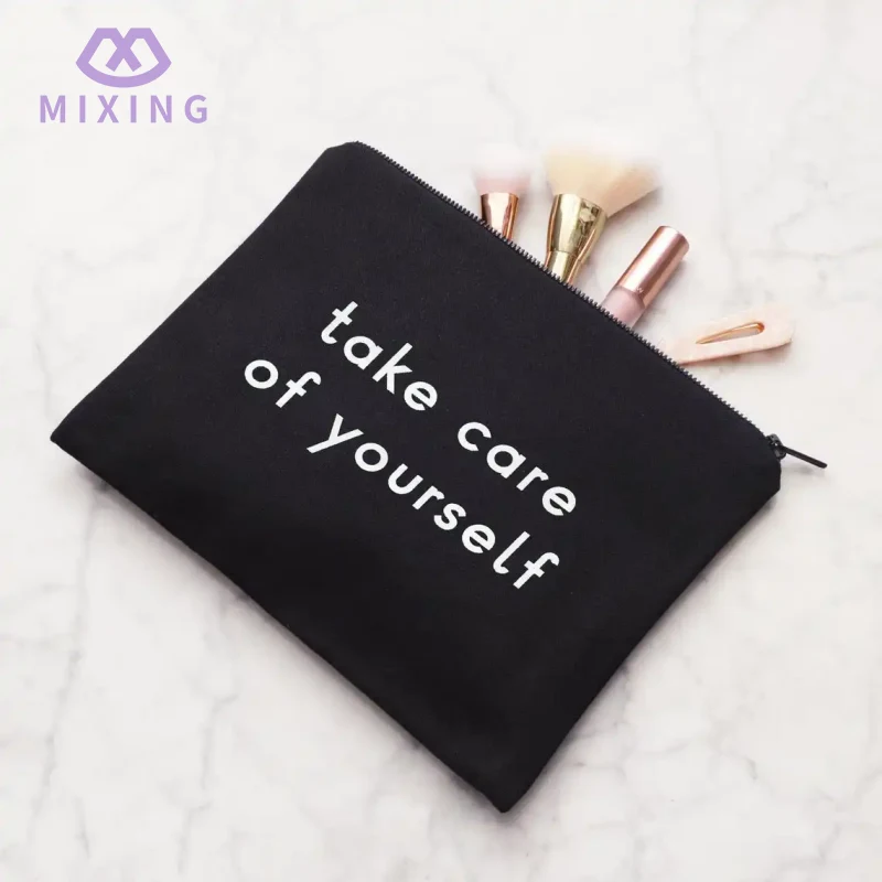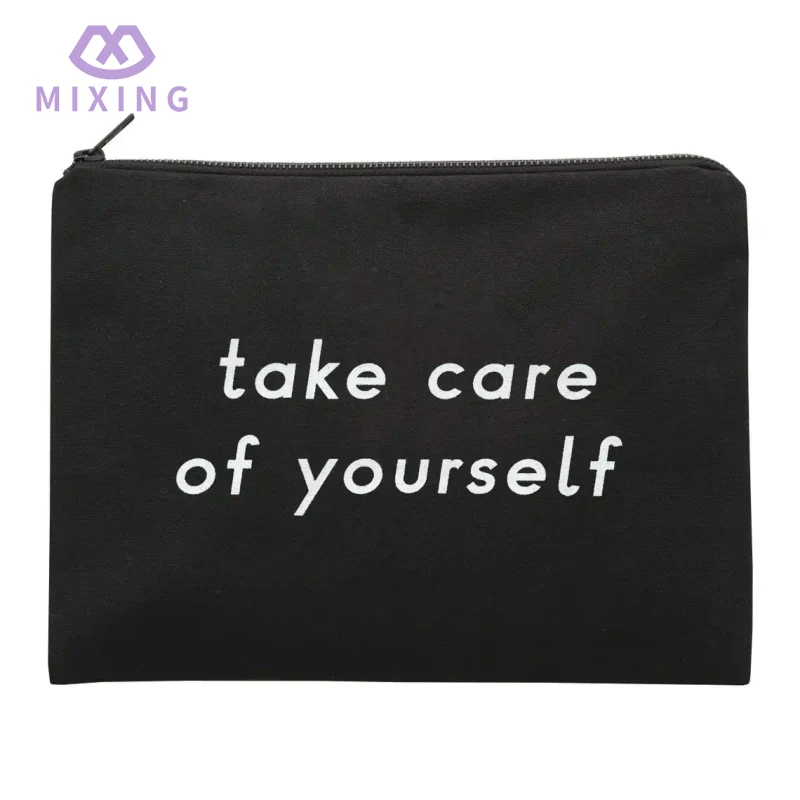Смешивание черной хлопковой косметички производителя из черной ткани имеет легкую фиксирующую обработку. Во время ежедневного использования нелегко испачкаться или испачкаться, даже если на него время от времени попадает немного тонального крема или помады, его можно протереть влажной тканью. Нет необходимости часто стирать и не нужно беспокоиться о выцветании или побелении после стирки, он по-прежнему сохраняет чистый и аккуратный черный вид даже после длительного использования.
