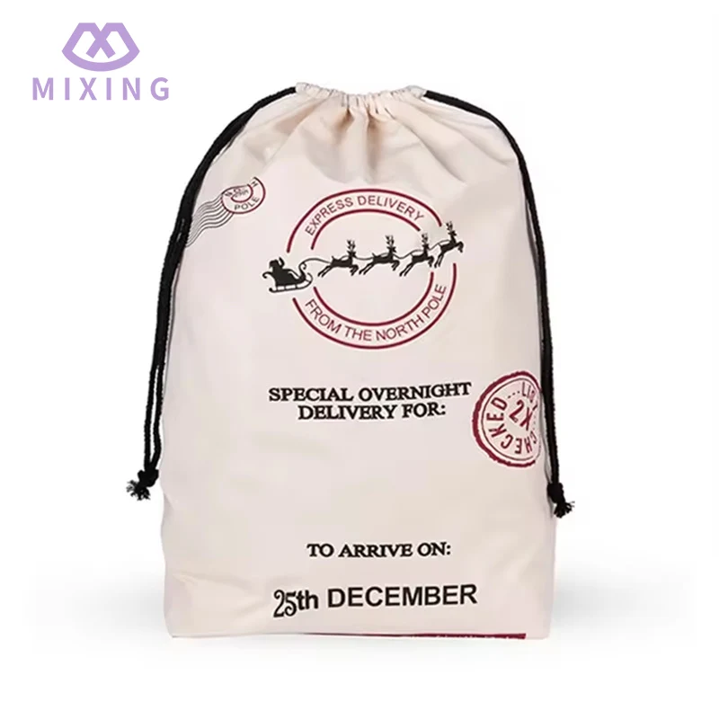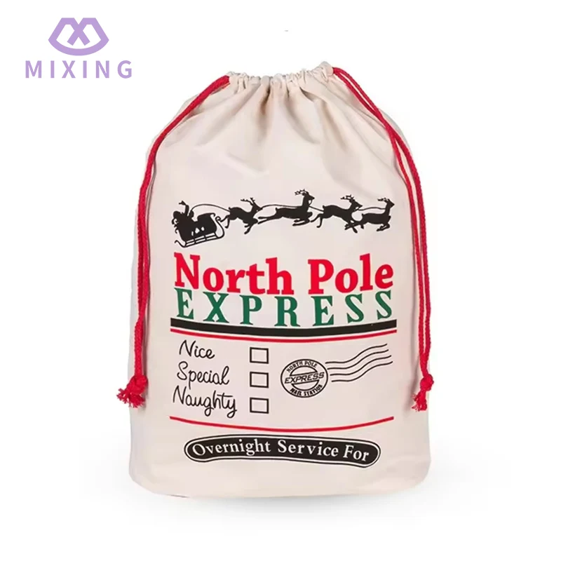 Ретро-текстура грубого хлопка и льна, используемого в персонализированном хлопковом рождественском мешке Санты, в сочетании с обычными элементами, такими как деревянные украшения, зеленые сосновые ветки и красные ленты в рождественском сезоне, может естественным образом вписаться в общее праздничное украшение, не выглядя неуместным. Эксклюзивные узоры, изготовленные по индивидуальному заказу, выделяют пакеты из однообразия обычной рождественской упаковки, передавая неповторимые чувства и теплоту, а также делая процесс вручения рождественских подарков более торжественным.