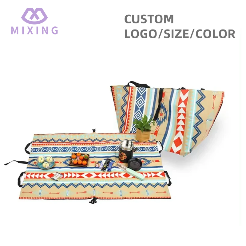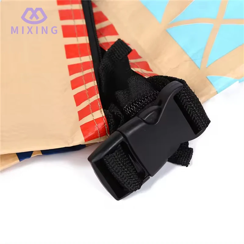 В закрытом состоянии китайская многоцелевая пляжная сумка из ПП-тканого пляжного коврика Mixing представляет собой аккуратную пляжную сумку, в которую легко помещаются необходимые для пляжа вещи, такие как купальники, полотенца, солнцезащитный крем, солнцезащитные очки, и имеет небольшие карманы. В нем удобно хранить мелкие предметы, такие как мобильные телефоны и ключи, их не нужно смешивать с влажными полотенцами или купальниками, а также это предотвращает их случайное затеряние в песке.