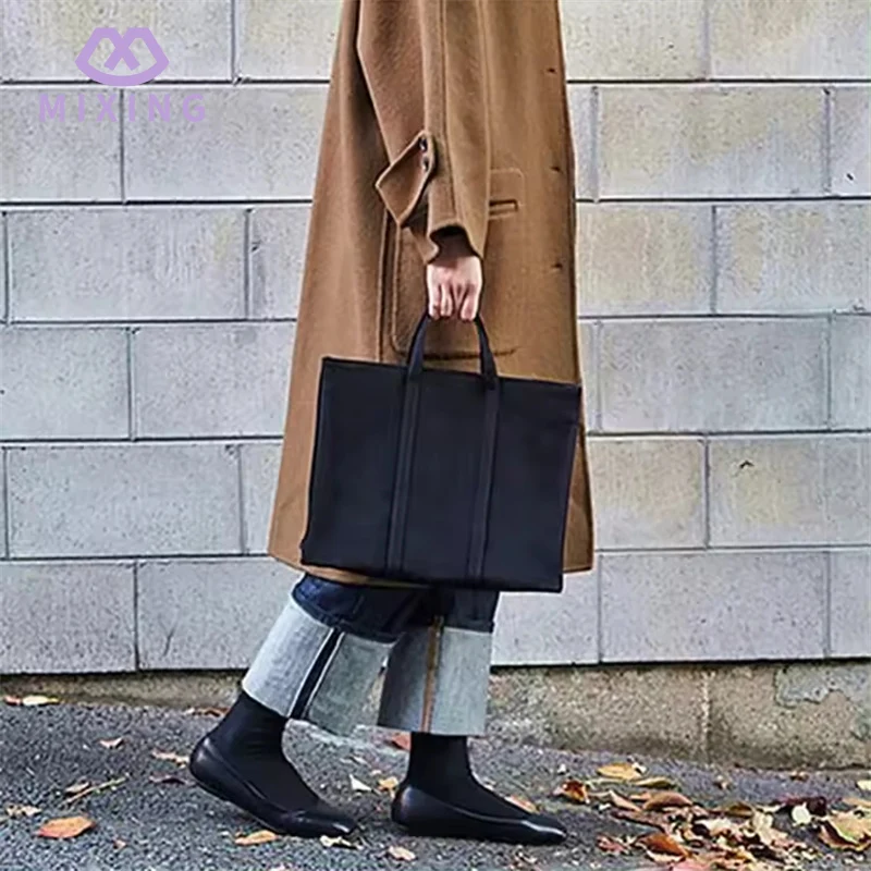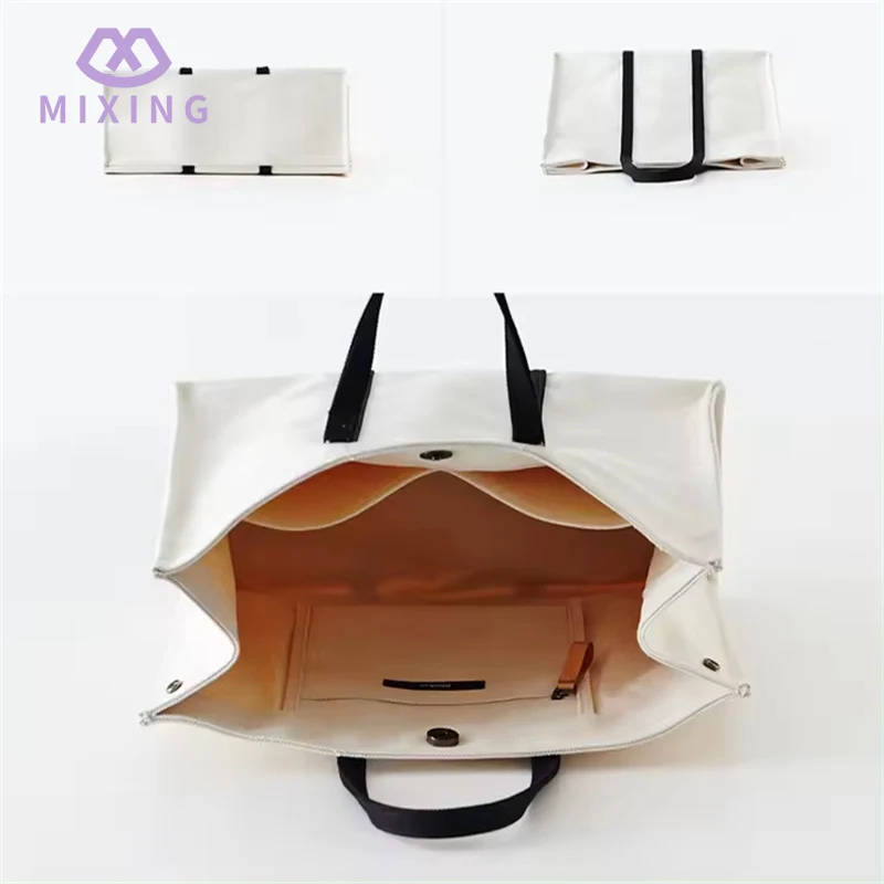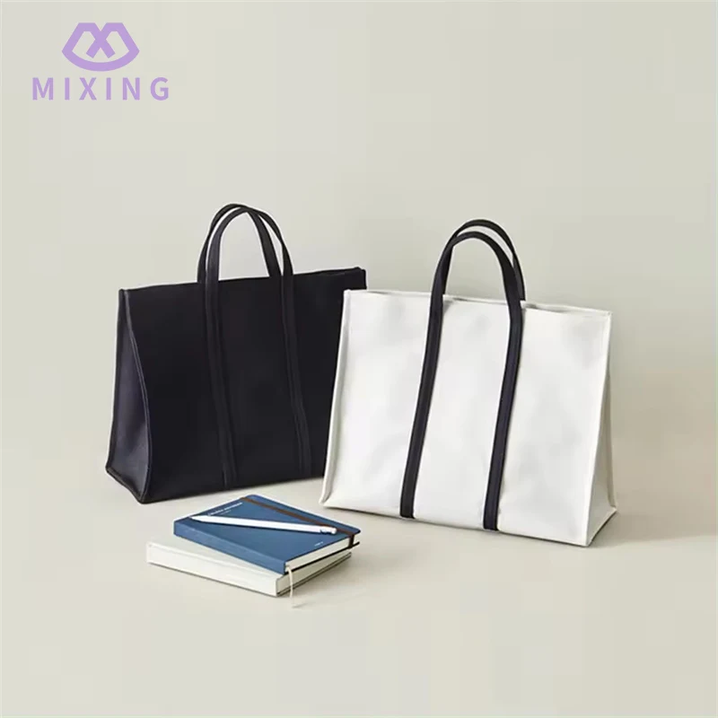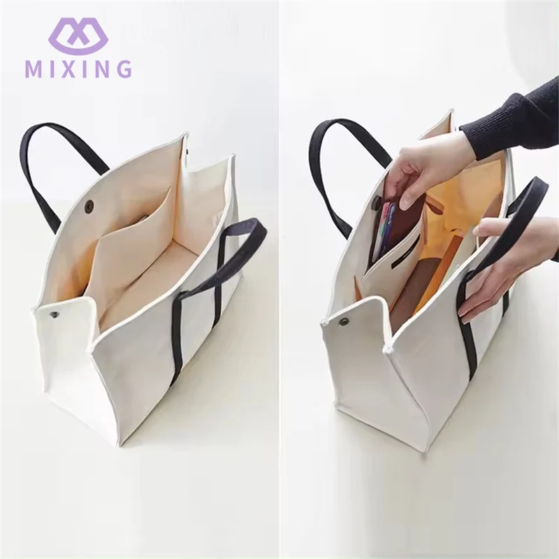 Материал Canvas, используемый в большой сумке Plain Canvas с ручками от поставщика Mixing, кажется толстым, но не громоздким. В отличие от некоторых тонких холщовых сумок, которые мягкие и мягкие, он может сохранять определенную степень жесткости после наполнения вещей, не деформирует предметы под давлением и выглядит более правильно.