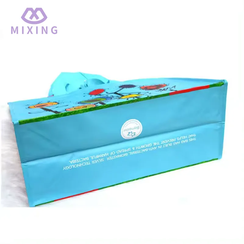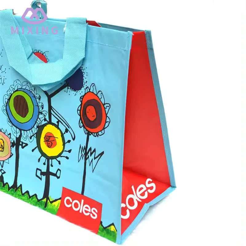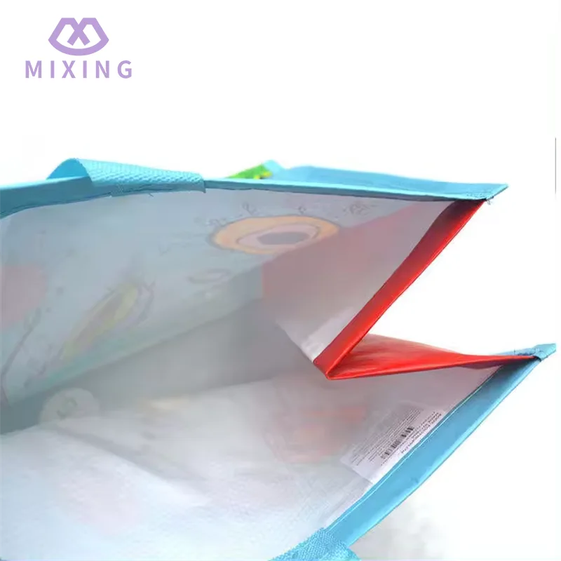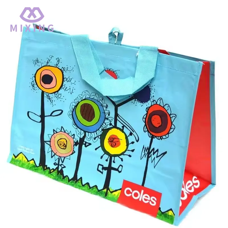 Китайская перерабатываемая тканая сумка для покупок из полипропилена производства Mixing изготовлена из плотного полотняного переплетения, она кажется прочной, но не жесткой, имеет определенную текстуру в руке, не легкая и не имеет поддержки, и ее нелегко деформировать при переноске вещей.